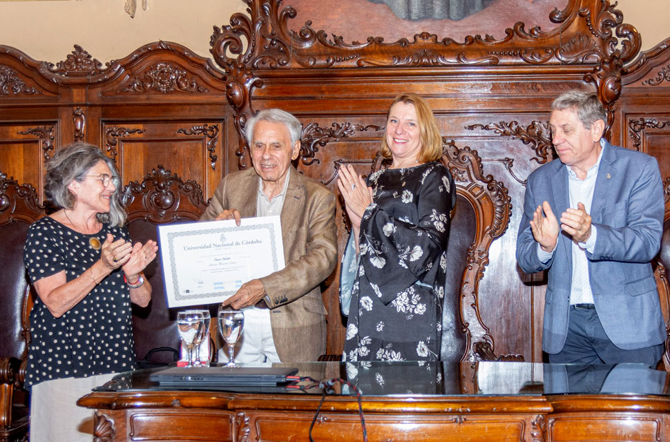 la Facultad de Ciencias Sociales de la UNC informó que con la presencia de la Decana de la Facultad de Ciencias Sociales, María Inés Peralta, junto al director del Instituto de Investigación y Formación en Administración Pública (IIFAP), Sergio Obeide, y otras autoridades de la Universidad Nacional de Córdoba, hoy 28 de noviembre se le entregó el título de Doctor Honoris Causa al Dr. Oscar Oszlak. Quien además dictó eventualmente un conversatorio “Estado abierto, tendencias y escenarios de la reforma estatal.” La ceremonia del título de Doctor Honoris Causa tuvo lugar en el Salón de Grados del viejo Rectorado. Obispo Trejo 242.