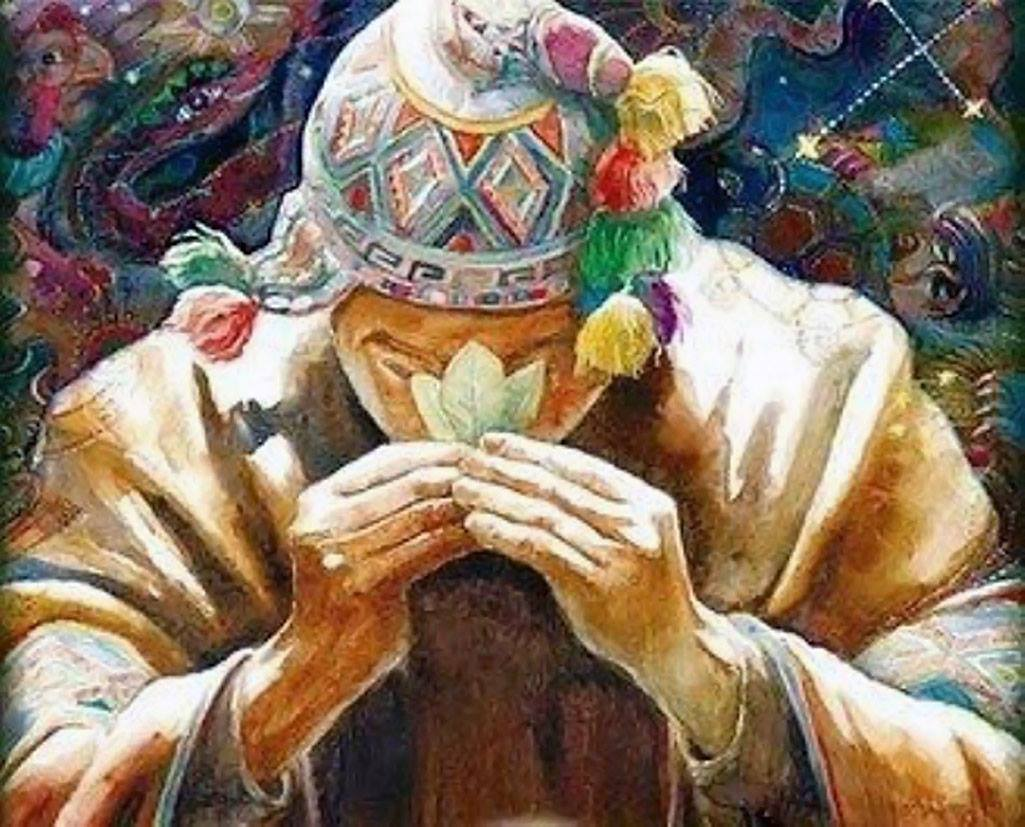 El sol de agosto ilumina el rostro de los invitados, mientras mascan la hoja sagrada sin tragarla y toman chicha u otra bebida con alcohol, brindando entre ellos y con la tierra, por la alegría del encuentro y los bienes recibidos durante el año agro pastoril.